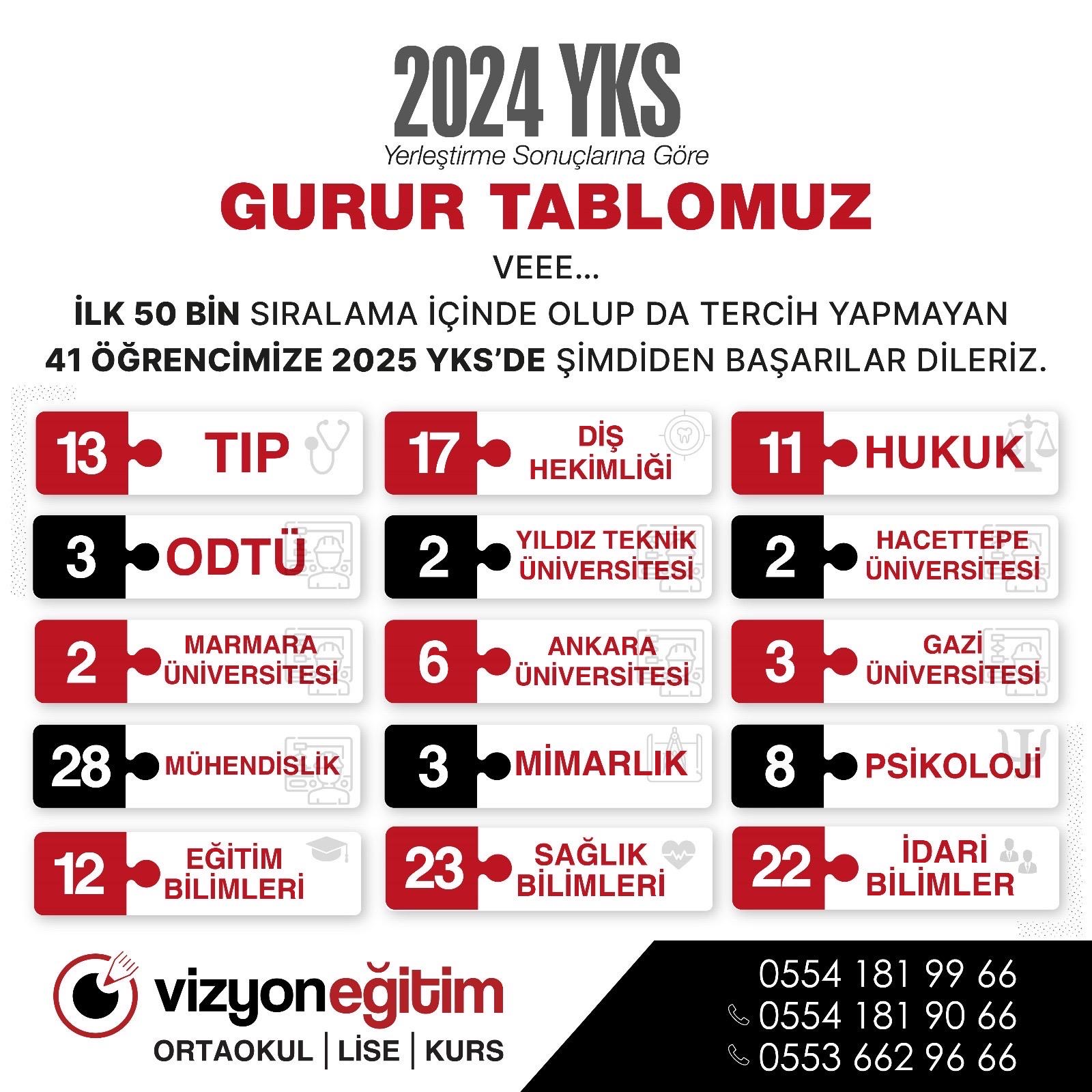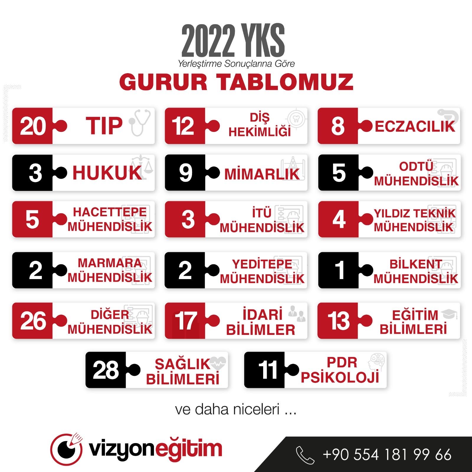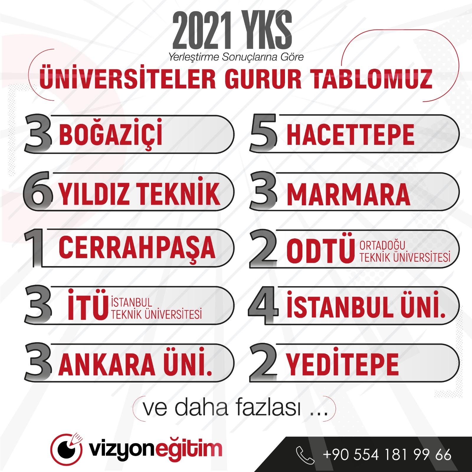 41 Tıp, 11 Diş Hekimliği, 52 Mühendislik ve Mimarlık, 8 Hukuk ve Türkiye’nin en önemli üniversitelerini kazanan öğrencilerimiz büyük bir başarıya imza attılar.